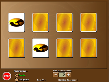 Option du pôle 3, le jeu de memory, l'option "Mémoire visuelle" permet d'associer 2...
